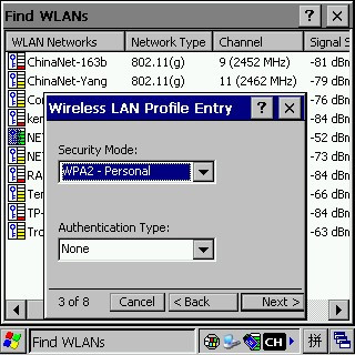 6、繼續(xù)點“Next”,出現(xiàn)“Security Mode”和“Authentication Type”的設置,這里需要注意的是,這兩個選項與具體的無線網(wǎng)絡設置有關,最好進入無線路由器的管理界面里弄清楚無線設置,一般Security Mode選“WPA2 - Personal”,Authentication Type選None: